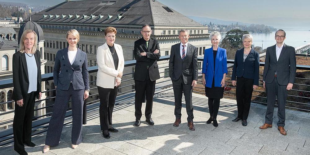 Der Regierungsrat wurde auf der Terrasse des Hauptsitzes der Zürcher Kantonalbank (ZKB) fotografiert. Im Hintergrund sieht man die Schweizerische Nationalbank. Die ZKB erwies sich in der Coronakrise als zuverlässige Partnerin und Stütze. Zusammen mit ihr konnte der Kanton innert kürzester Zeit ein Hilfsprogramm für subsidiäre Kreditausfallgarantien aufbauen, das sich an kleinere und mittlere Unternehmen richtete. Es wurde unter der Federführung der ZKB rasch und unbürokratisch von mehreren Banken umgesetzt. Teile der ZKB-Jubiläumsdividende konnten ausserdem als Hilfeleistung für Selbständigewerbende eingesetzt werden. Die Nationalbank ihrerseits trug mit ihren mehrfachen Gewinnausschüttungen zur Stabilisierung der Kantonsfinanzen bei. (pd.)