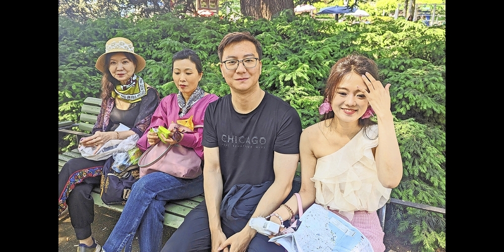 Und dann sehe ich sie, die junge Chinesin auf der grünen Bank im Park beim Bürkliplatz. Was studiert sie intensiv? Den Stadtplan von Zürich. Daneben zwei Damen und ein Herr, die das emsige Treiben auf dem gerade stattfindenden Flohmarkt beobachten. Auf Englisch frage ich sie, ob ich ein Foto von ihnen machen dürfe. Für ein «local newspaper», füge ich an. Sie kommuniziert mit ihren Reisebegleitern und nickt. Ich hätte sie gern mehr gefragt, aber eine echte Konversation war nicht möglich. Wenn ich etwas auf Englisch fragte, antwortete die freundliche junge Frau ausschliesslich auf Chinesisch. Schön, entnehmen sie alle Informationen über Zürich ihrem Stadtplan, der perfekt in der chinesischen Sprache verfasst ist.