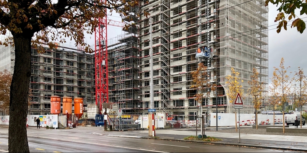 Während das Laub sich zu färben und zu fallen begonnen hat, sind in Zürich in den letzten Wochen mehrere Wohntürme kräftig in die Höhe geschossen – Beton spriesst zu allen Jahreszeiten. Die Stadt ist am Höhensturm tatkräftig beteiligt: Gleich zwei Hochhäuser zählt die Siedlung (Tram-)Depot Hard beim Escher-Wyss-Platz – eindrücklich, wie mächtig sich das strassenseitige direkt an der Hardturmstrasse hochreckt. Ein Hochhaus ist in die Siedlung Letzi am Gleisfeld in Altstetten integriert.